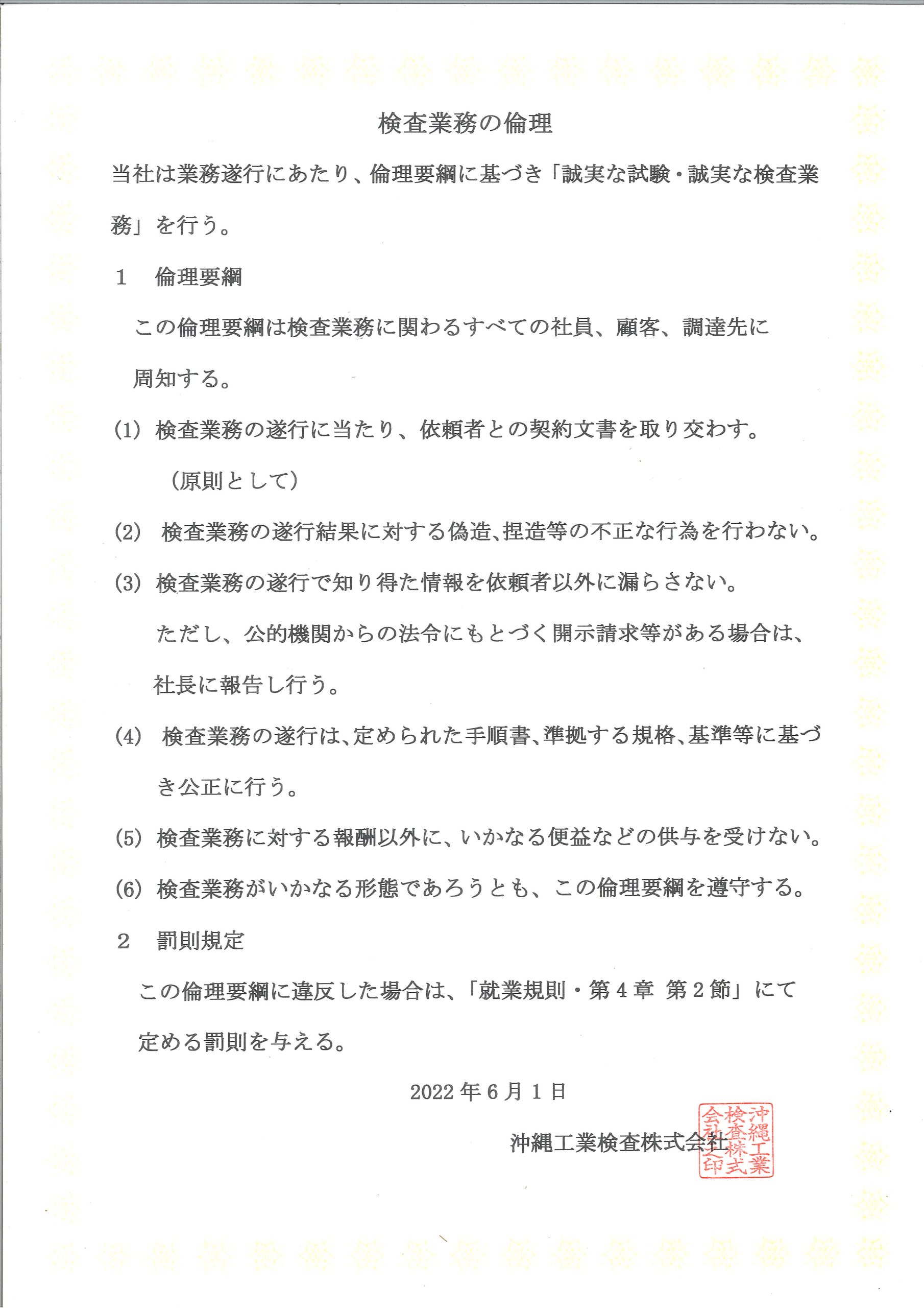 支援、また次世代を担う若手社員の育成に努めることにより、信頼のある検査業務が遂行